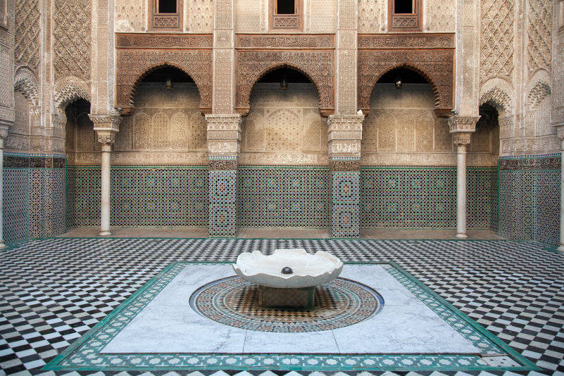 Al Attarine Madrasa is a masterpiece of Moroccan architecture, with its stunning tile work, intricate carvings, and geometric patterns. The madrasa features a central courtyard surrounded by rooms for students and scholars. The courtyard is adorned with a beautiful fountain, which is a traditional feature of Islamic architecture.